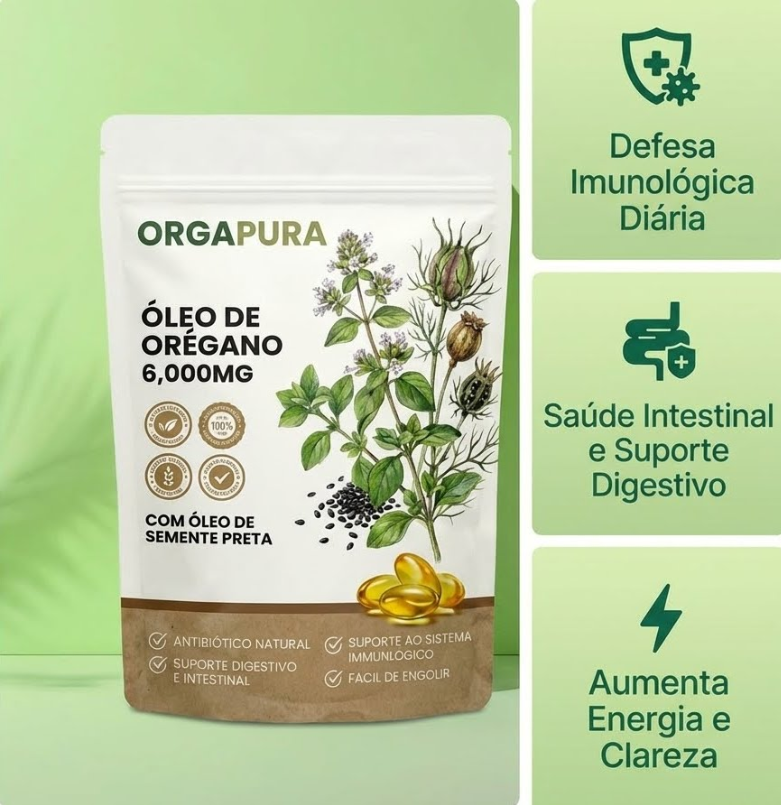 Cada cápsula combina óleo de orégano de alta potência (6.000 mg) com óleo de semente preta (200 mg) — dois ingredientes clinicamente estudados, conhecidos por suas propriedades antibacterianas, antivirais e anti-inflamatórias naturais.
